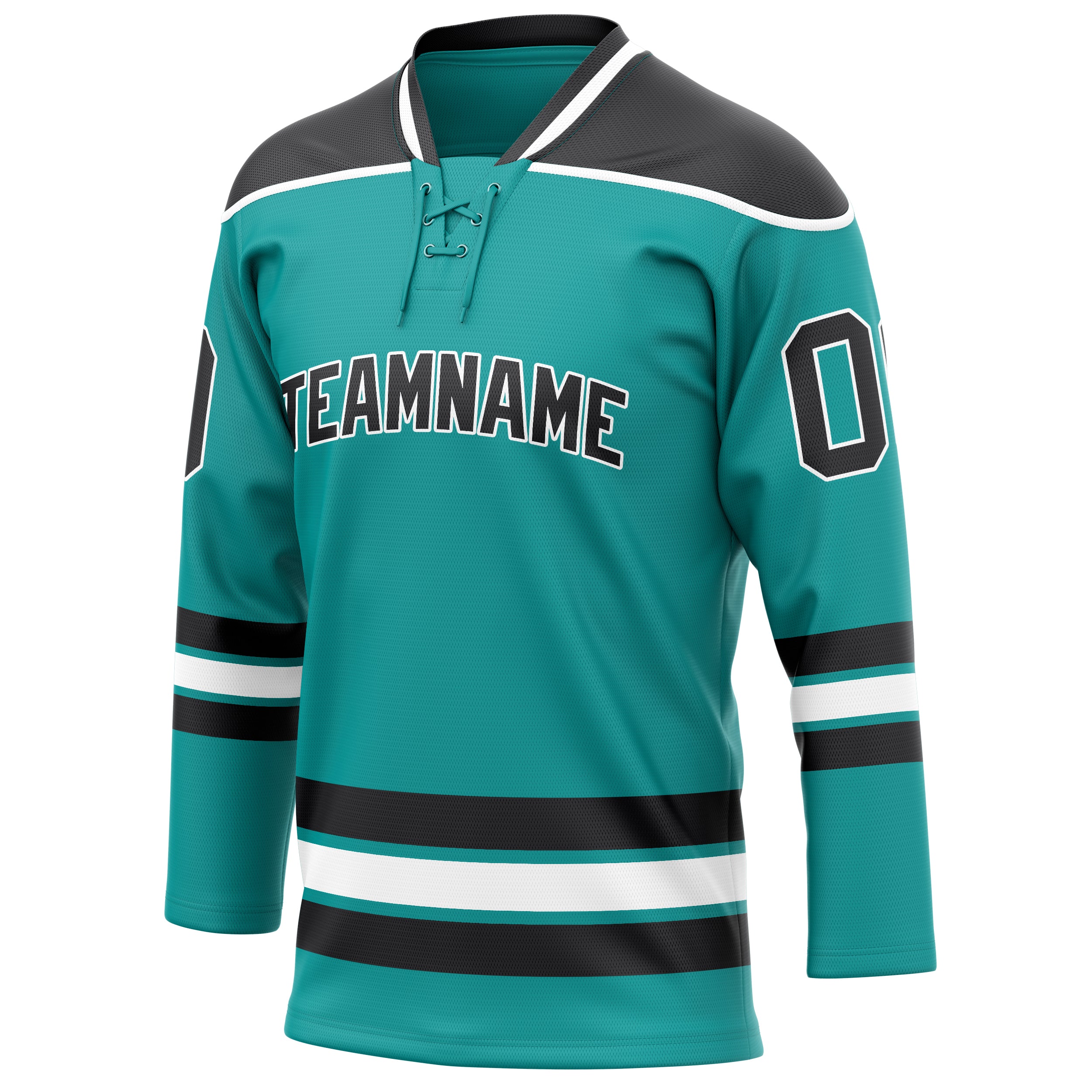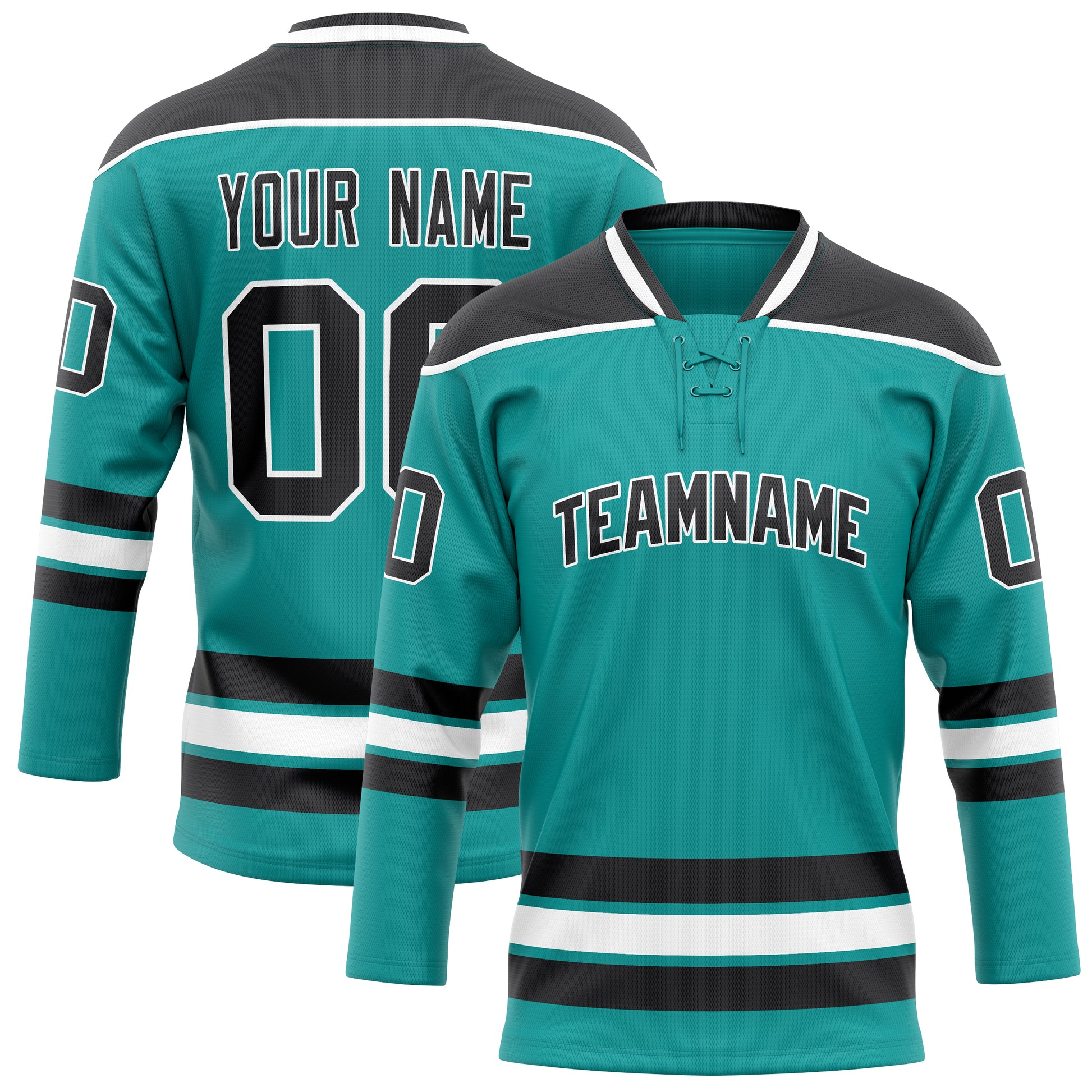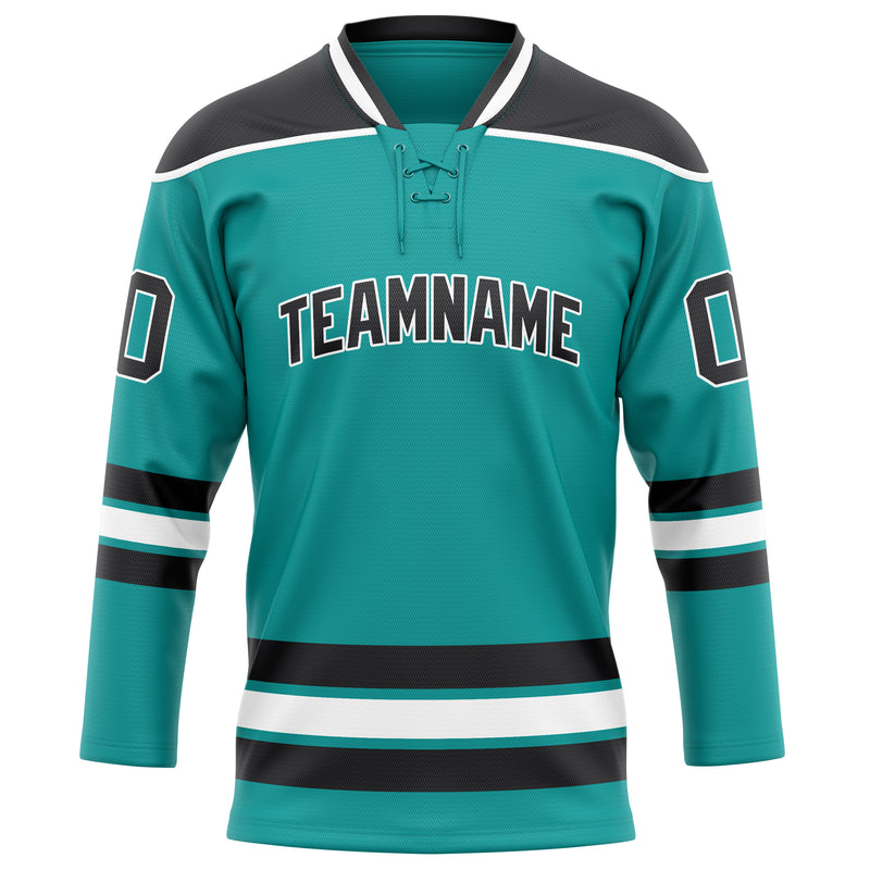 Custom Aqua Black Solid Colour Hockey Jersey