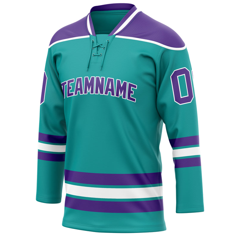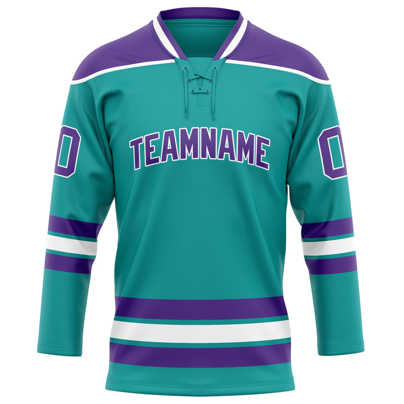 Custom Aqua Purple Solid Colour Hockey Jersey
