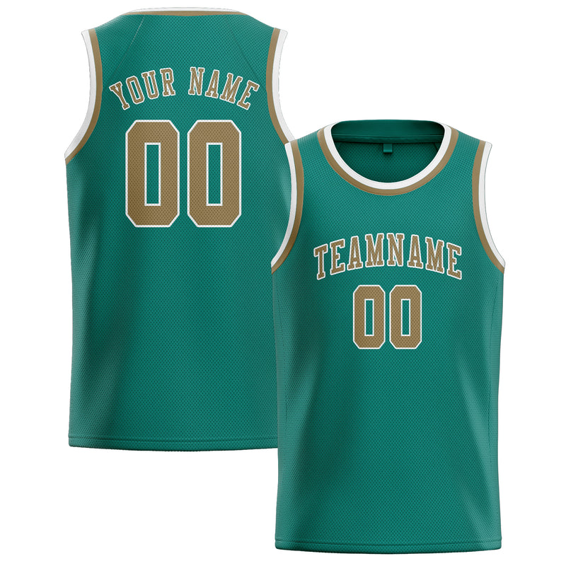 Custom Blue Green Light Khaki Basketball Jersey