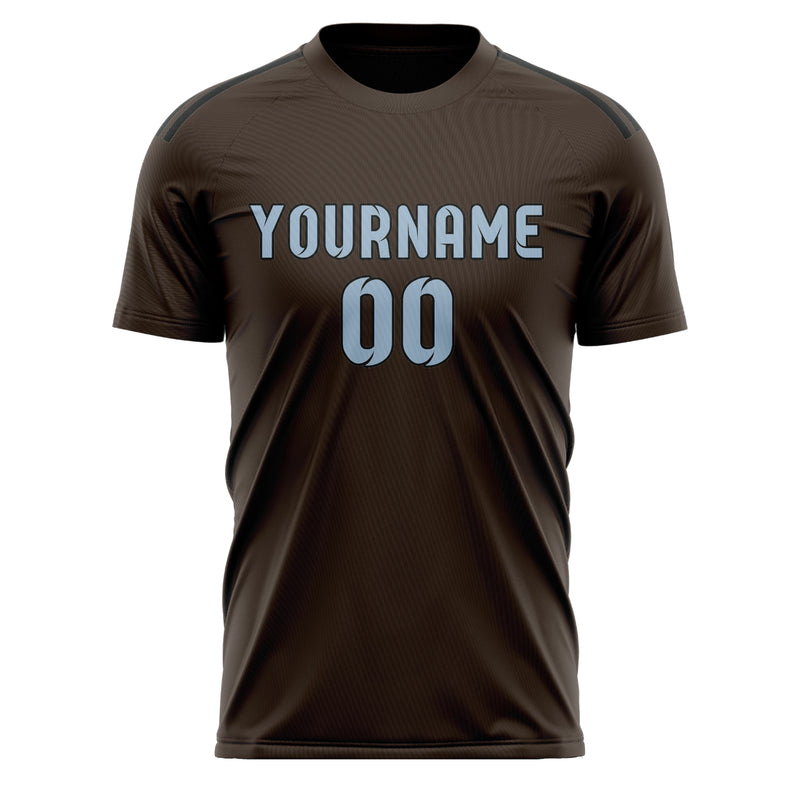 Custom Brown Light Blue Soccer Jersey