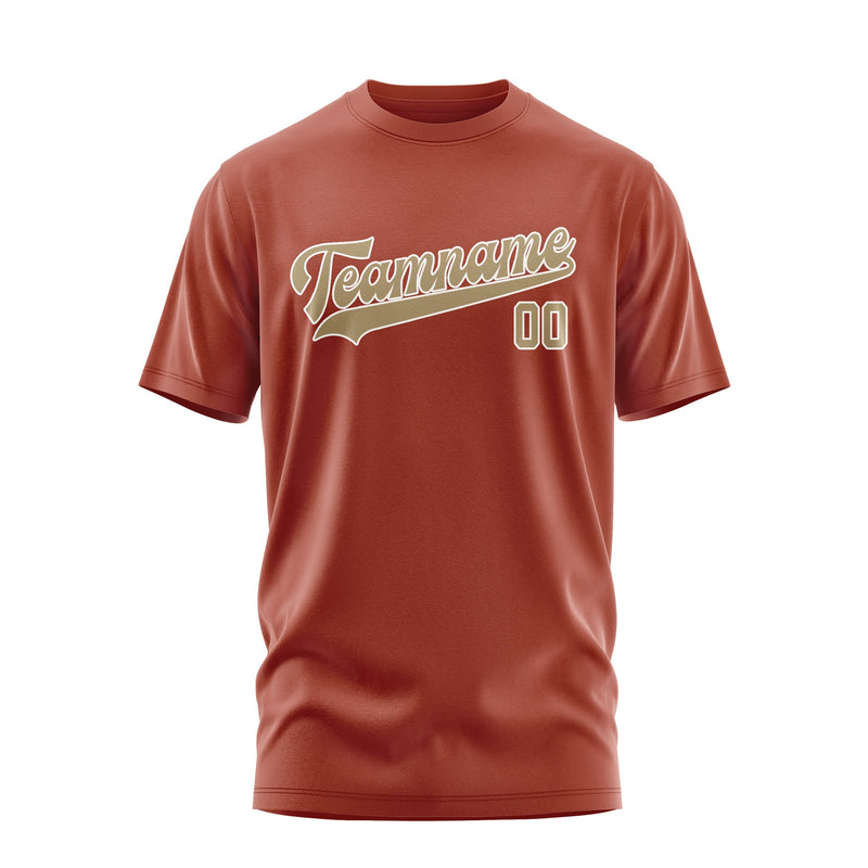 Custom Coral Red Light Khaki T-Shirt
