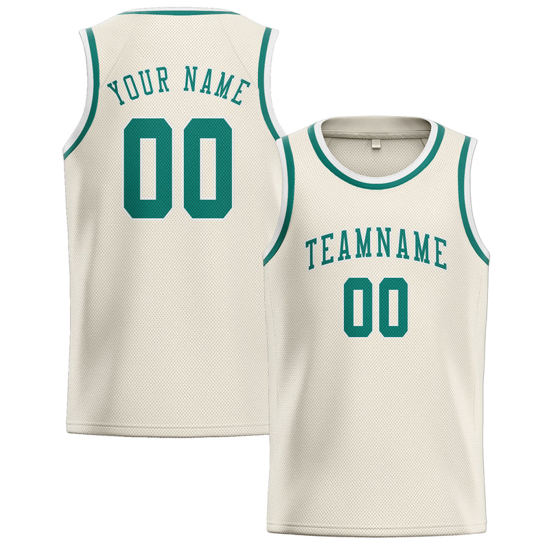 Custom Cream Blue Green Basketball Jersey