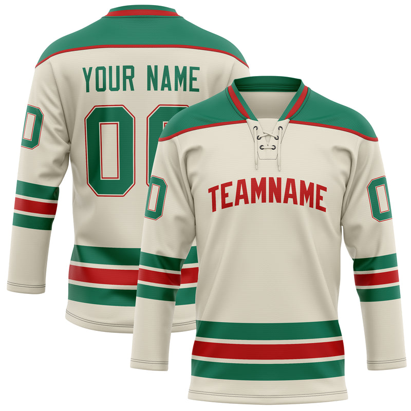 Custom Cream Kelly Green Solid Colour Hockey Jersey