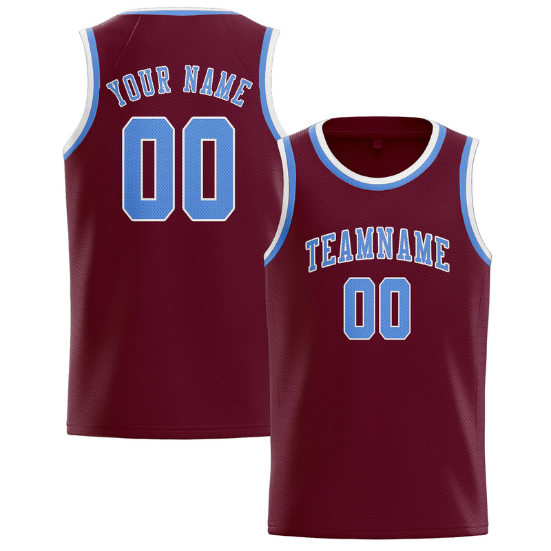 Custom Crimson Red Light Blue Basketball Jersey