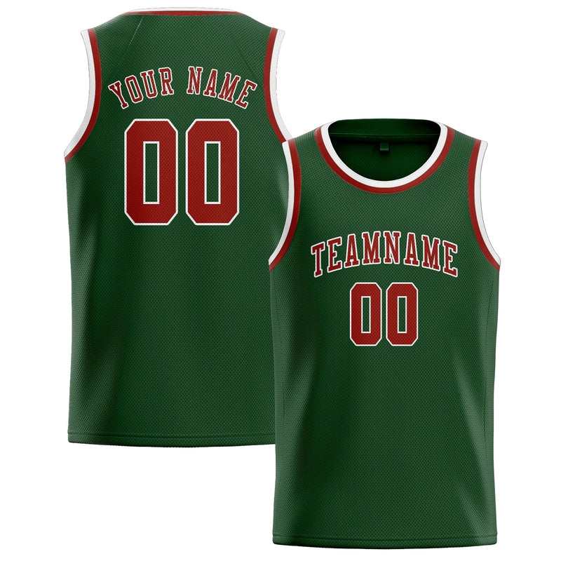 Custom Dark Green Coral Red Basketball Jersey