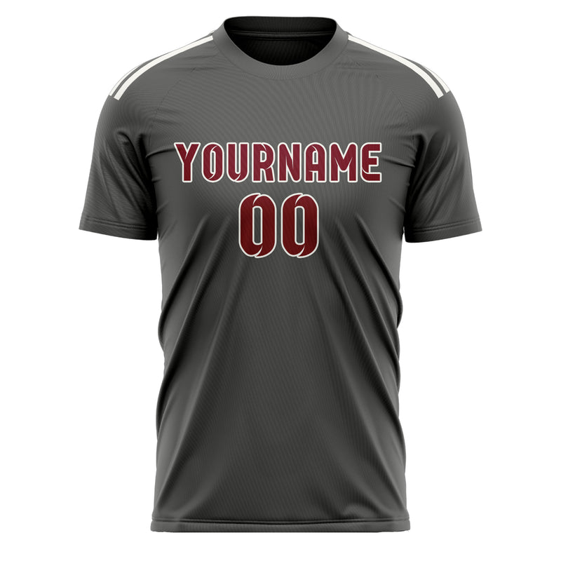 Custom Dark Grey Crimson Red Soccer Jersey