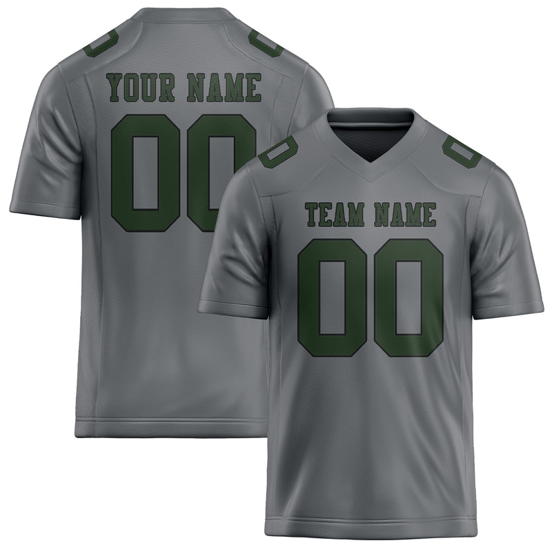 Custom Gray Dark Green Football Jersey