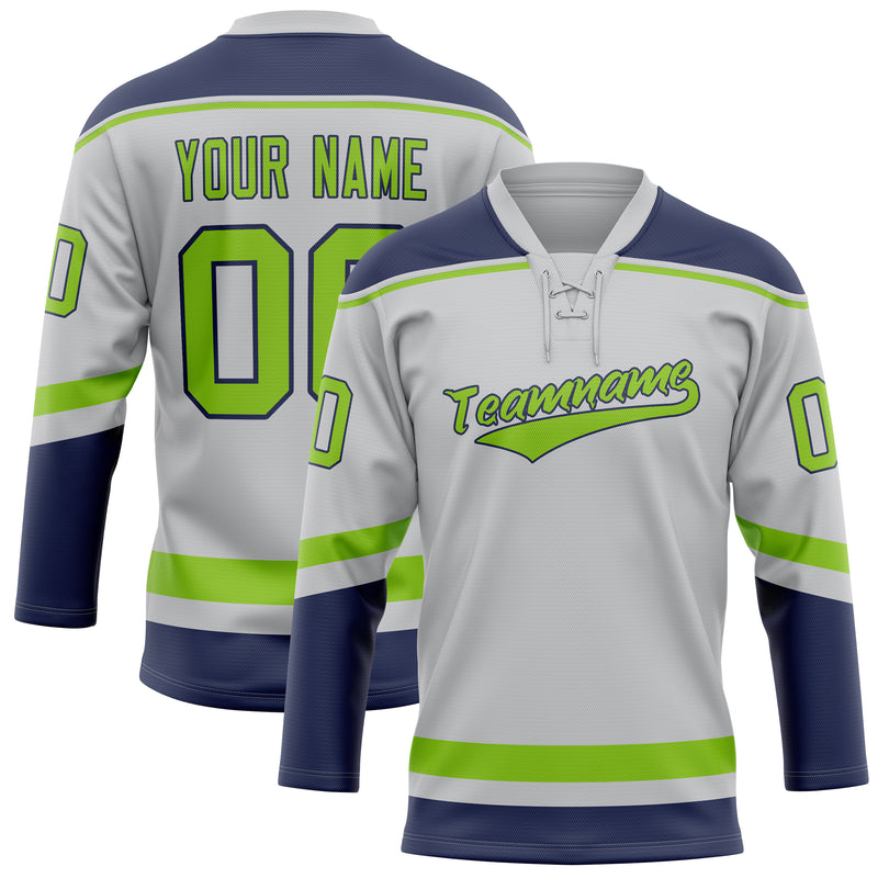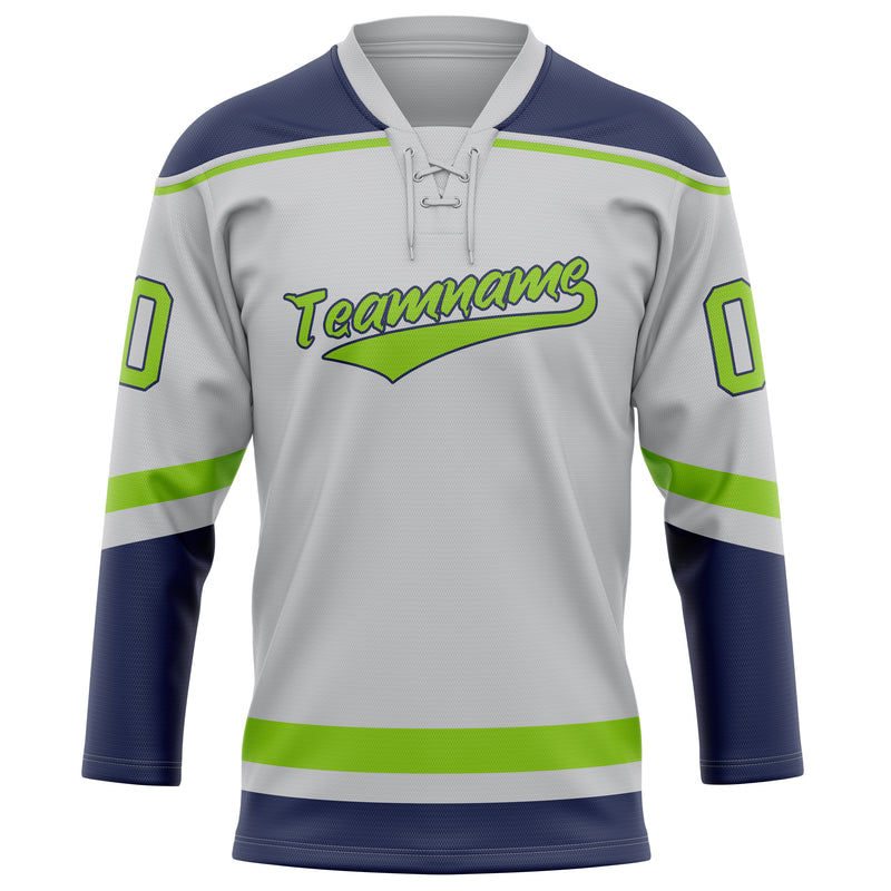 Custom Gray Neon Green Solid Colour Hockey Jersey