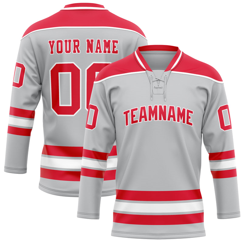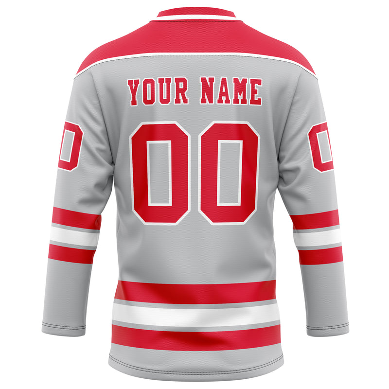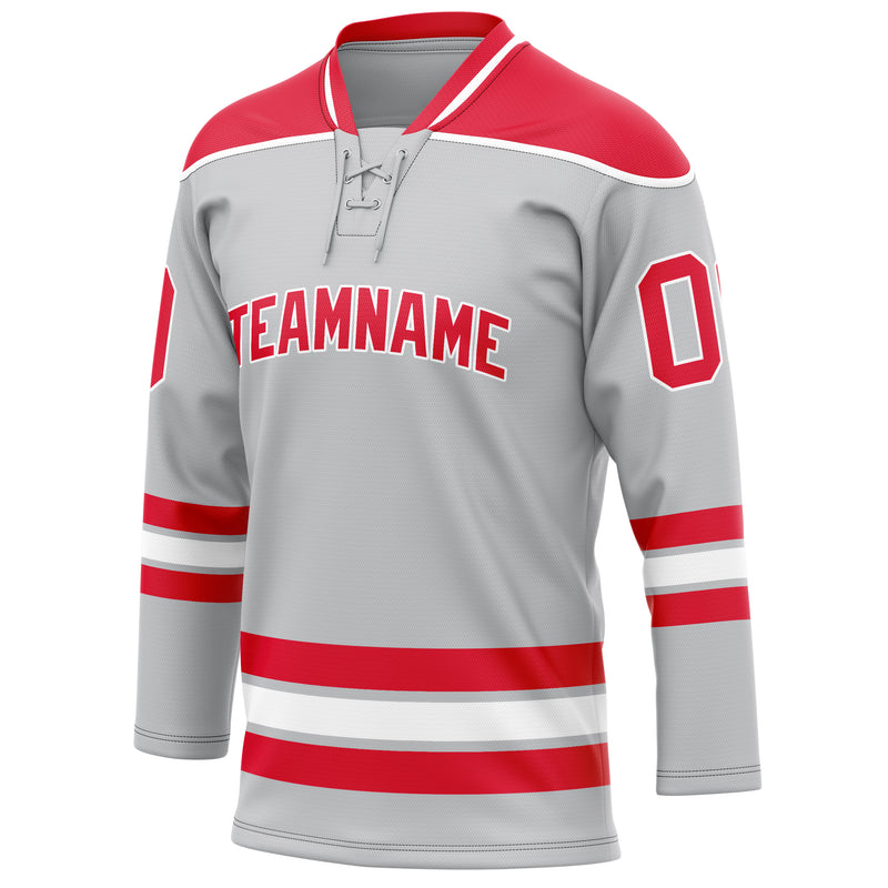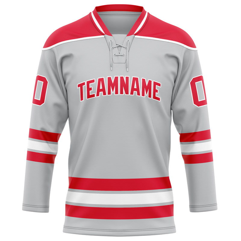 Custom Gray Red Solid Colour Hockey Jersey