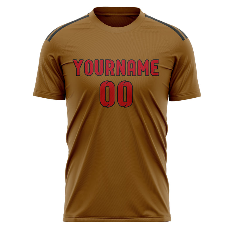 Custom Khaki Red Soccer Jersey