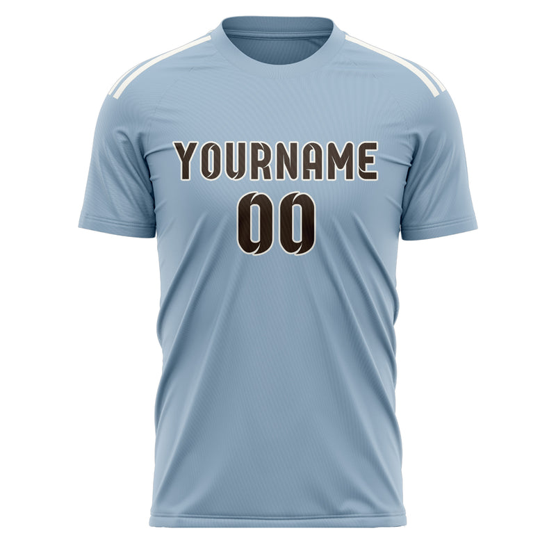 Custom Light Blue Brown Soccer Jersey