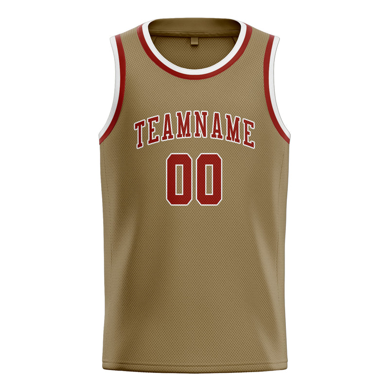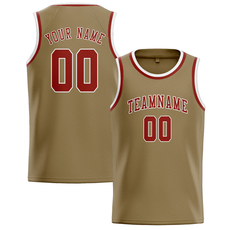 Custom Light Khaki Coral Red Basketball Jersey