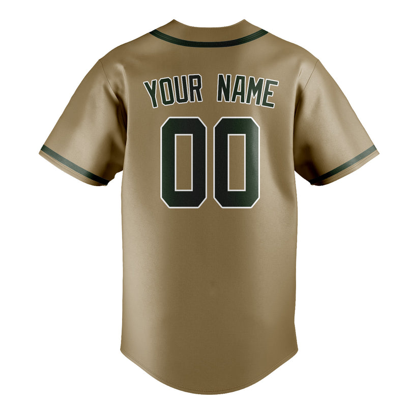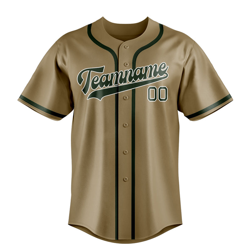 Custom Light Khaki Dark Green Baseball Jersey