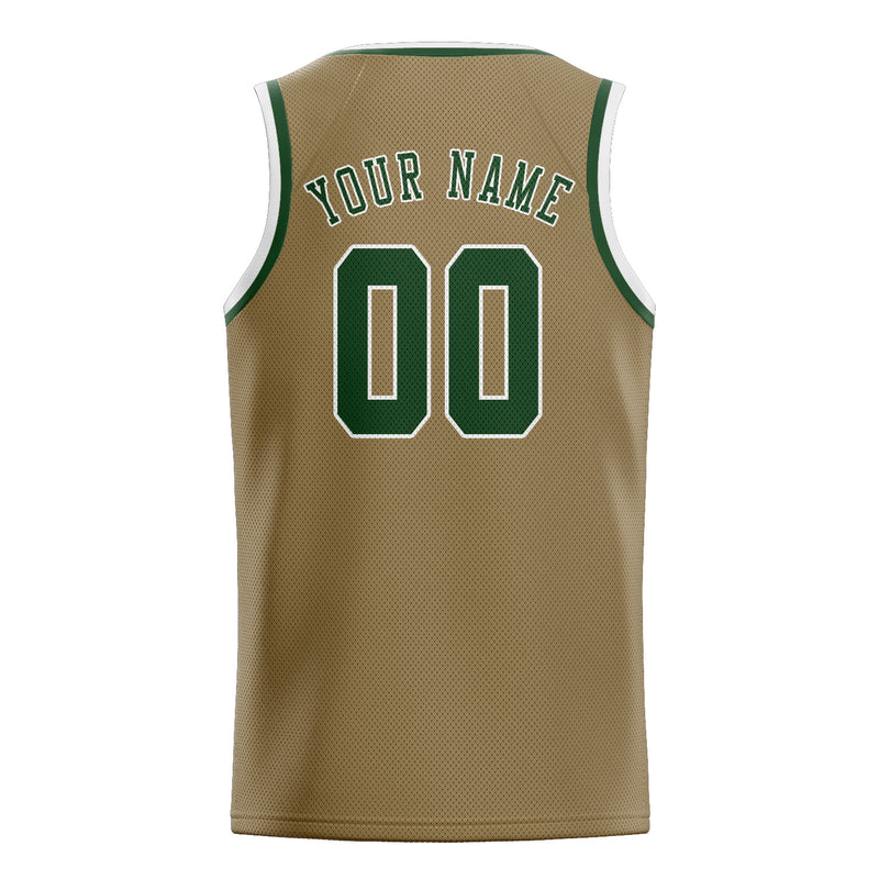 Custom Light Khaki Dark Green Basketball Jersey