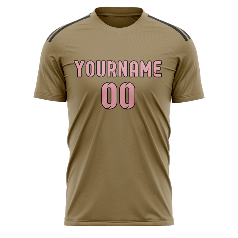 Custom Light Khaki Light Pink Soccer Jersey