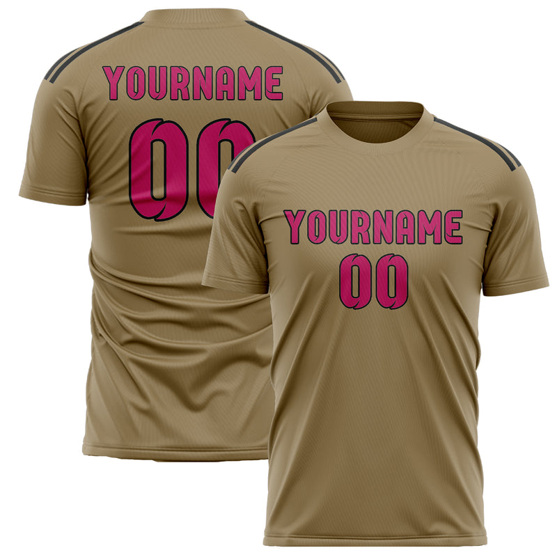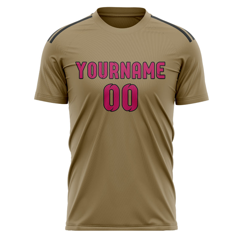 Custom Light Khaki Pink Soccer Jersey