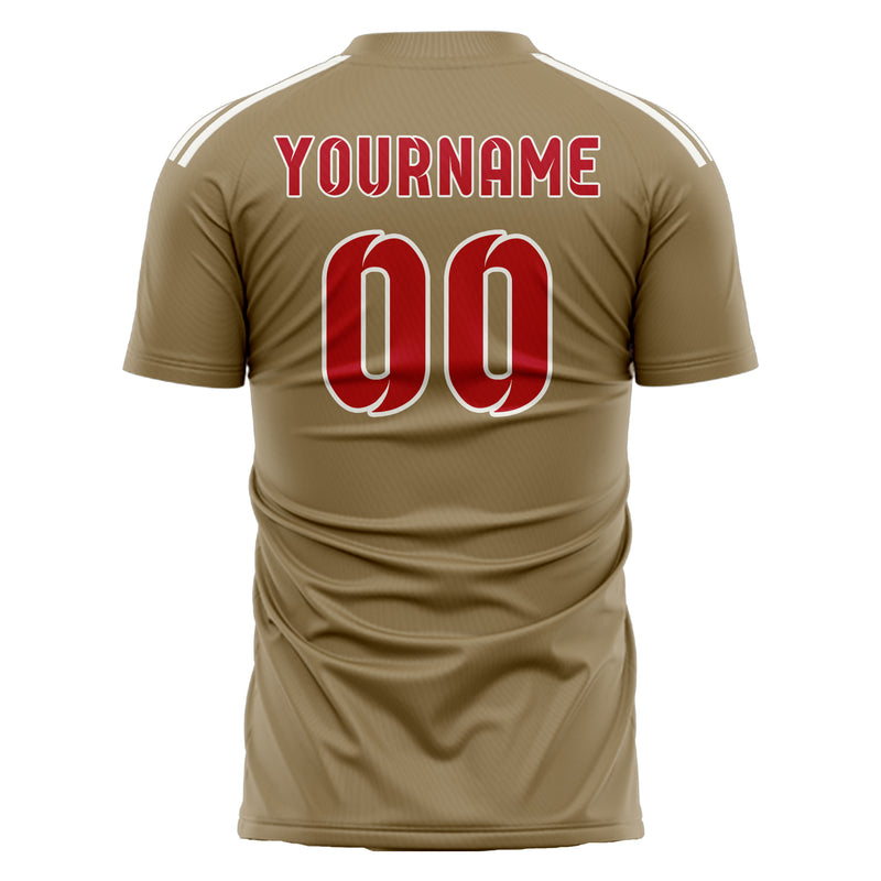 Custom Light Khaki Red Soccer Jersey