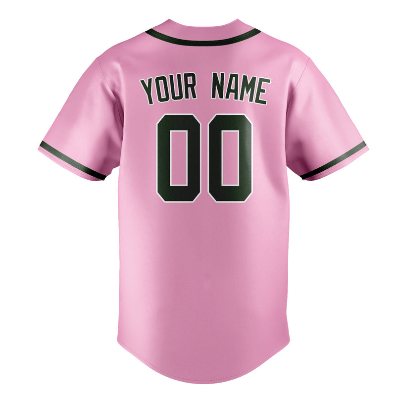 Custom Light Pink Dark Green Baseball Jersey