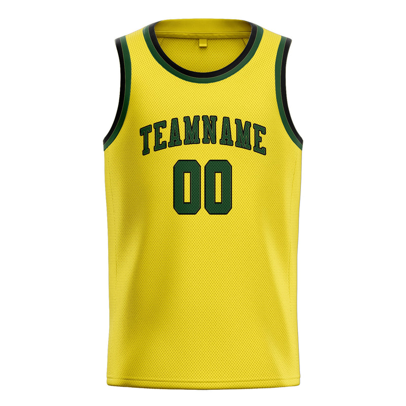 Custom Light Yellow Dark Green Basketball Jersey