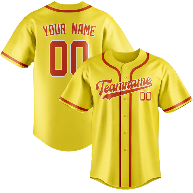 Custom Light Yellow Orange Red Baseball Jersey