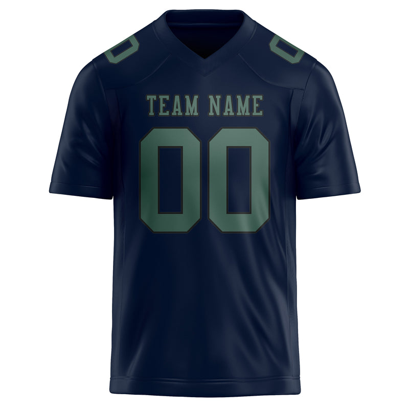 Custom Navy Blue Green Football Jersey
