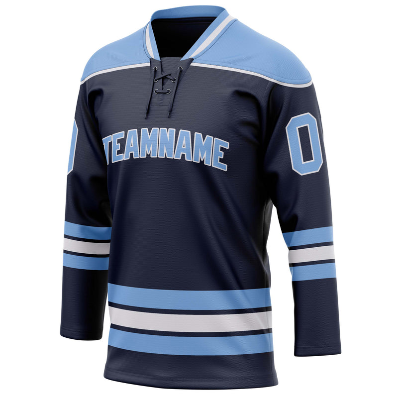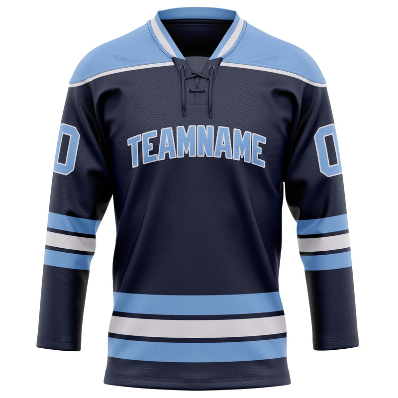 Custom Navy Light Blue Solid Colour Hockey Jersey