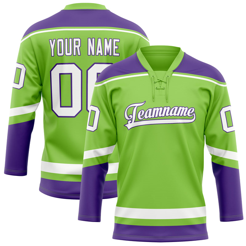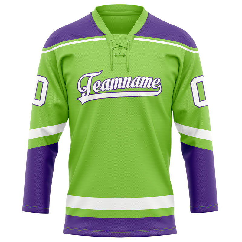 Custom Neon Green Purple Solid Colour Hockey Jersey
