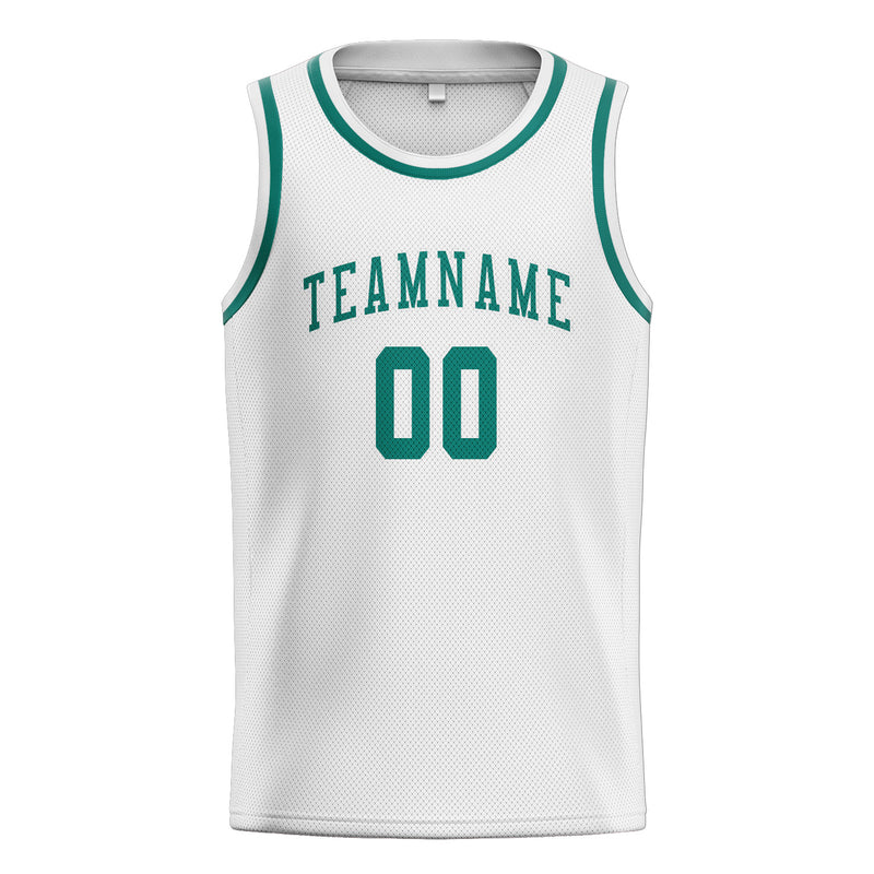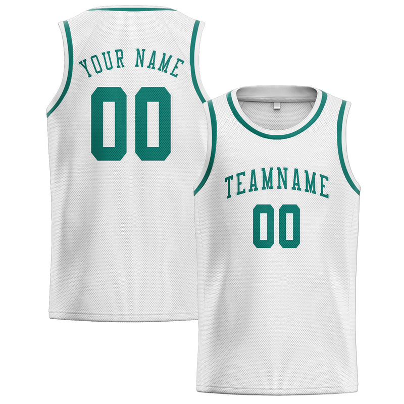 Custom White Blue Green Basketball Jersey