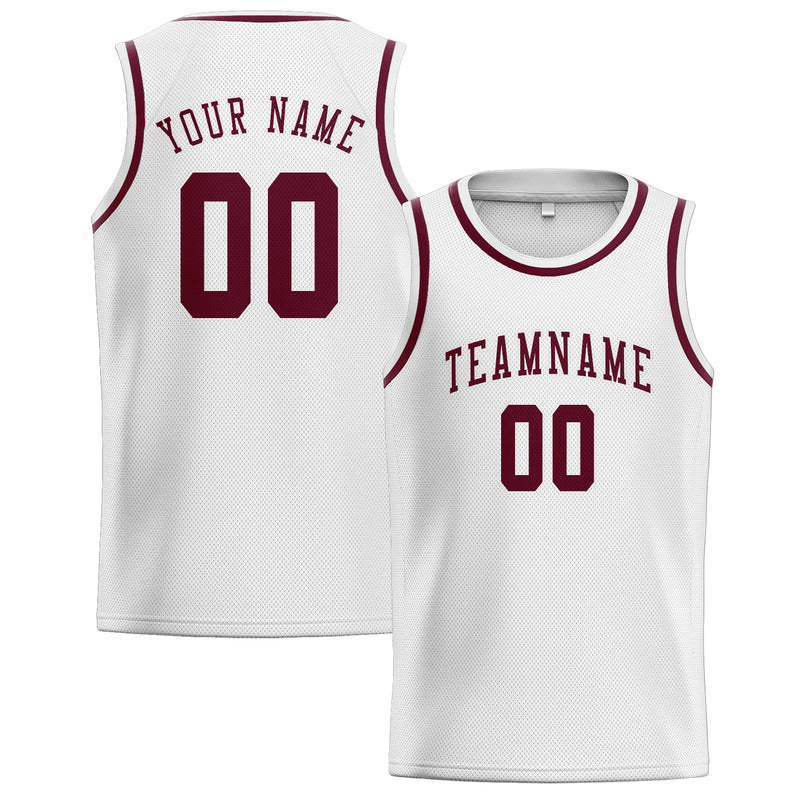 Custom White Crimson Red Basketball Jersey