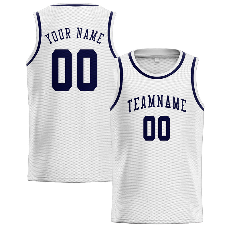 Custom White Navy Basketball Jersey